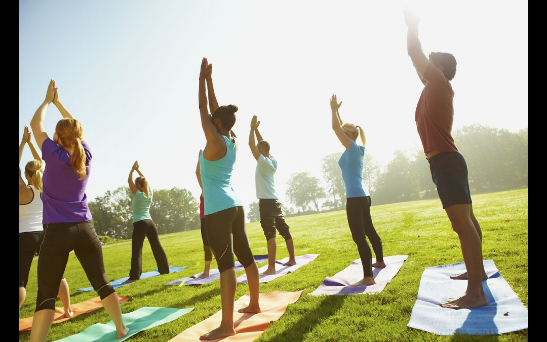 -Kom och njut av olika Yogaklasser i solen på gräsmattan tvärs över parkeringen på Hälsokompaniet.