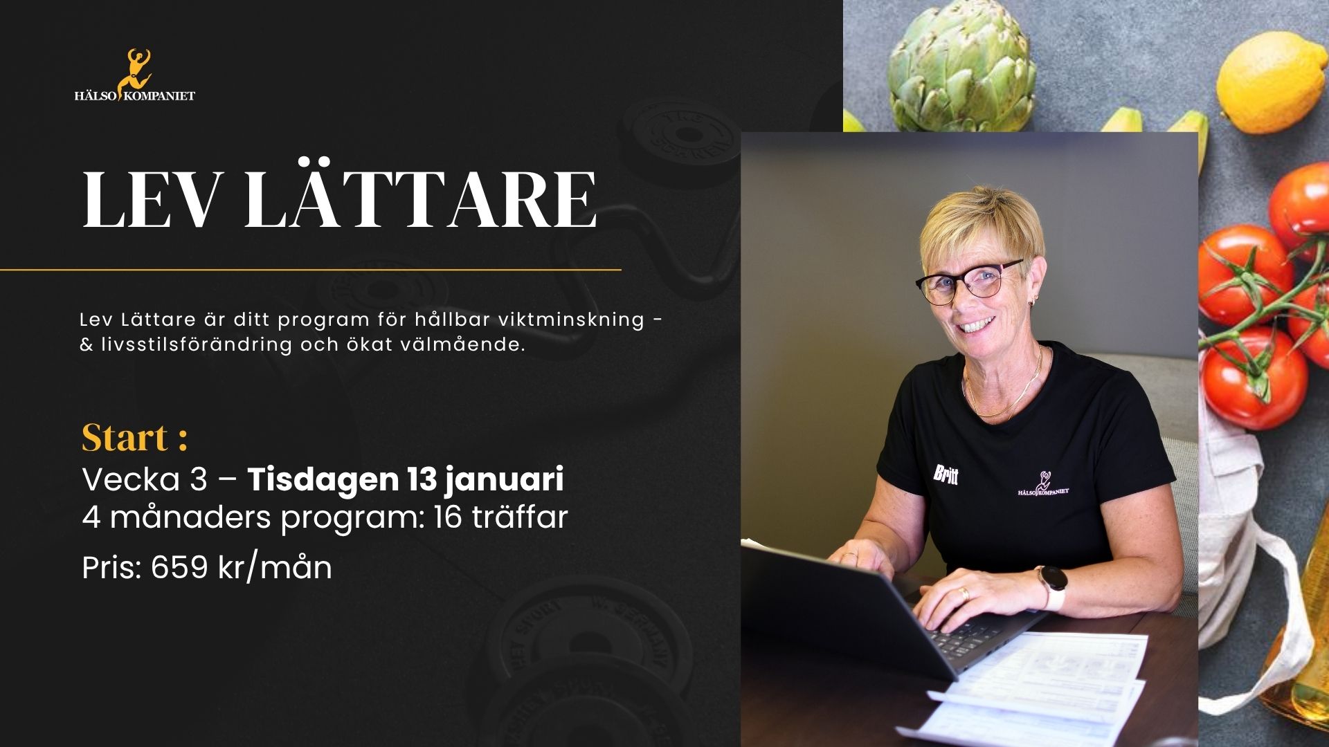 Vill du komma igång eller hitta motivationen att fortsätta din resa mot en friskare och starkare vardag? Vårt program LEV LÄTTARE hjälper dig att skapa nya, hållbara vanor för både kropp och sinne. Här får du rätt kunskap, stöd och inspiration för att nå ditt mål med viktminskning – en gång för alla.